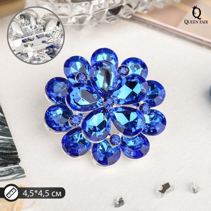 Брошь «Императрица» иней, цвет синий в золоте