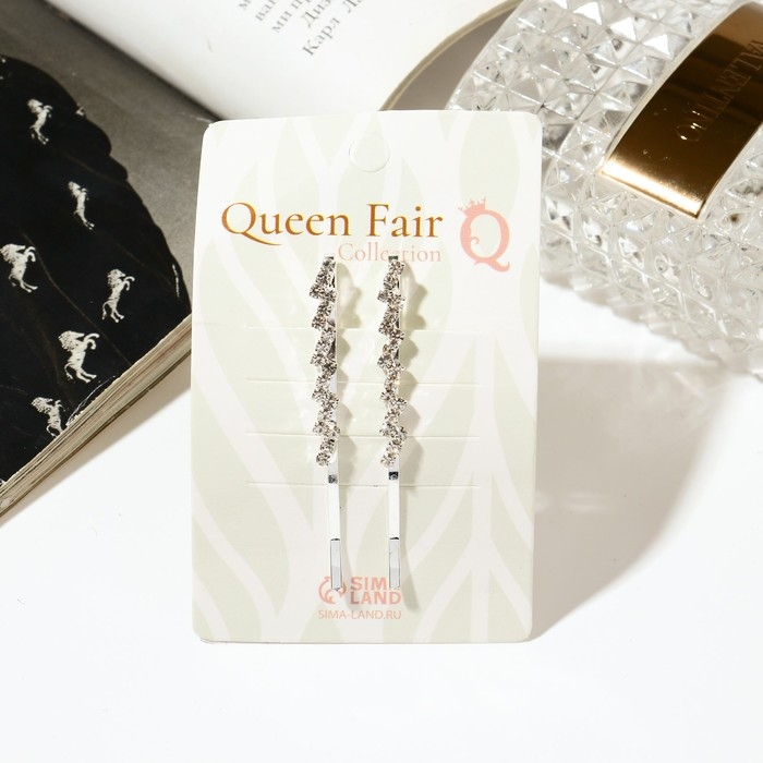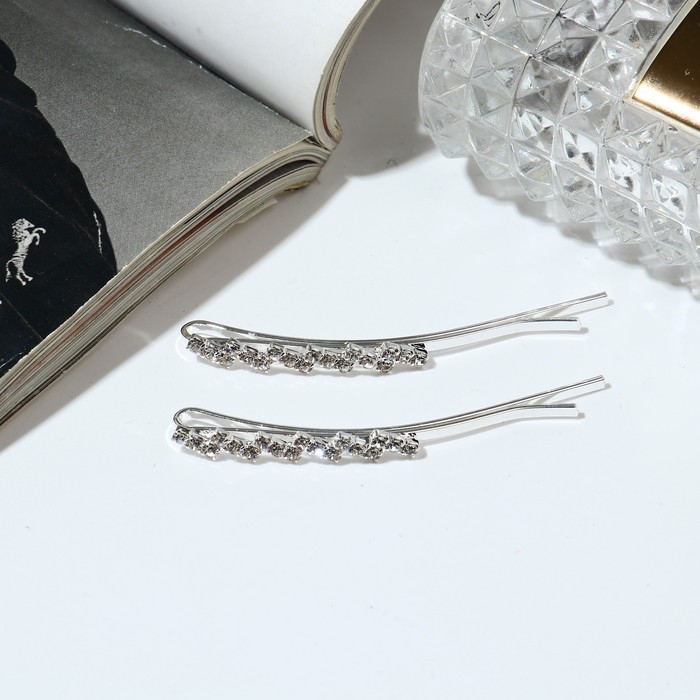 Невидимка для волос "Волшебный блеск" (набор 2 шт) зиг заг, 5,5 см, серебро