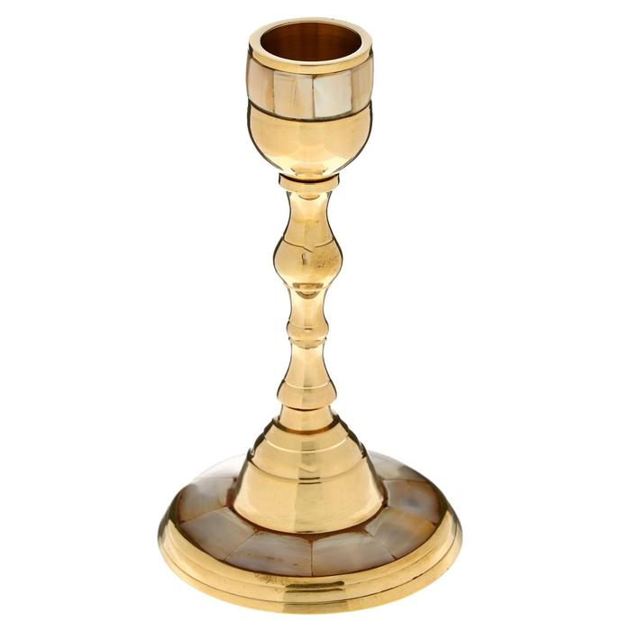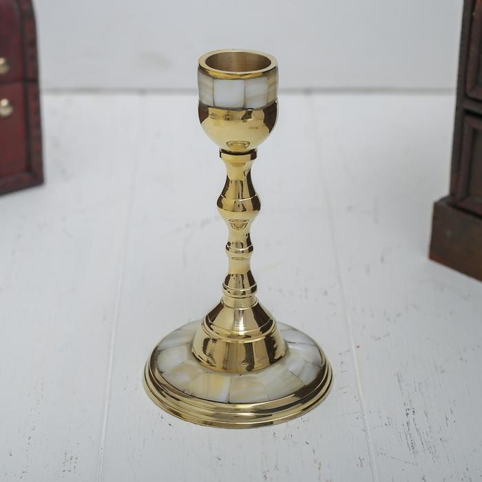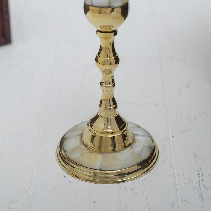 Подсвечник с перламутром "Воображение" на 1 свечу, латунь 7,5х7,5х13,5 см