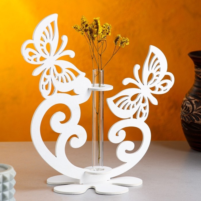 Кашпо деревянное 13.5×13×26.5 см с 1 колбой "Бабочки", белый Дарим Красиво