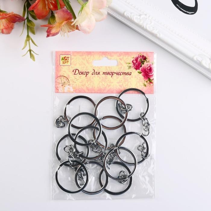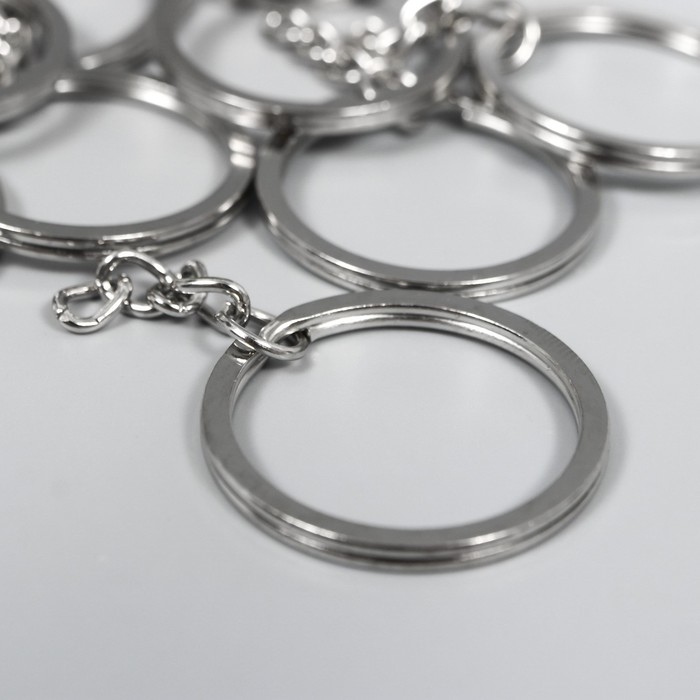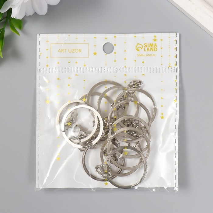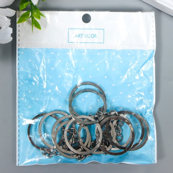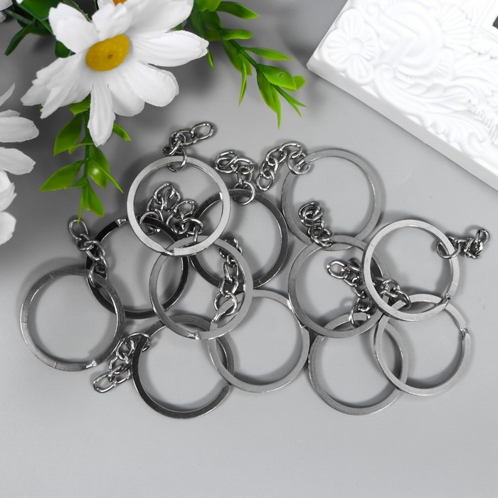 Основа для брелока кольцо плоское металл с цепочкой серебро 3,2х3,2 см набор 12 шт
