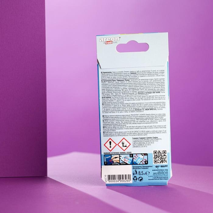 Создать неповторимую атмосферу комфорта в салоне любимого автомобиля очень просто! Достаточно наполнить воздух благоуханием. Ароматизаторы на зеркало Areon такие яркие и оригинальные, что не оставят ни одного автолюбителя равнодушным! Аромат Свежесть гор – немного сосновой хвои, немного цитрусов и горьких трав, плюс едва уловимые ноты аромата нежных горных цветов и безграничная ледяная свежесть.