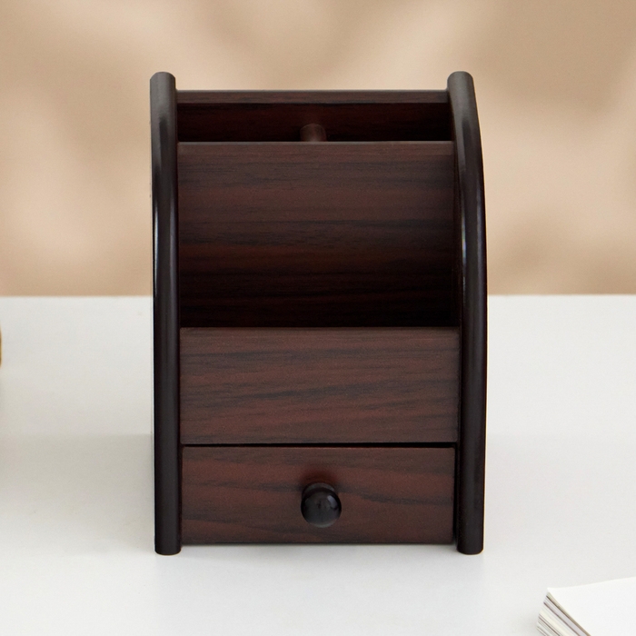 Органайзер 2 секции, 1 выдвижной ящик, серия Вишня с кантом черным, 12х12х14см