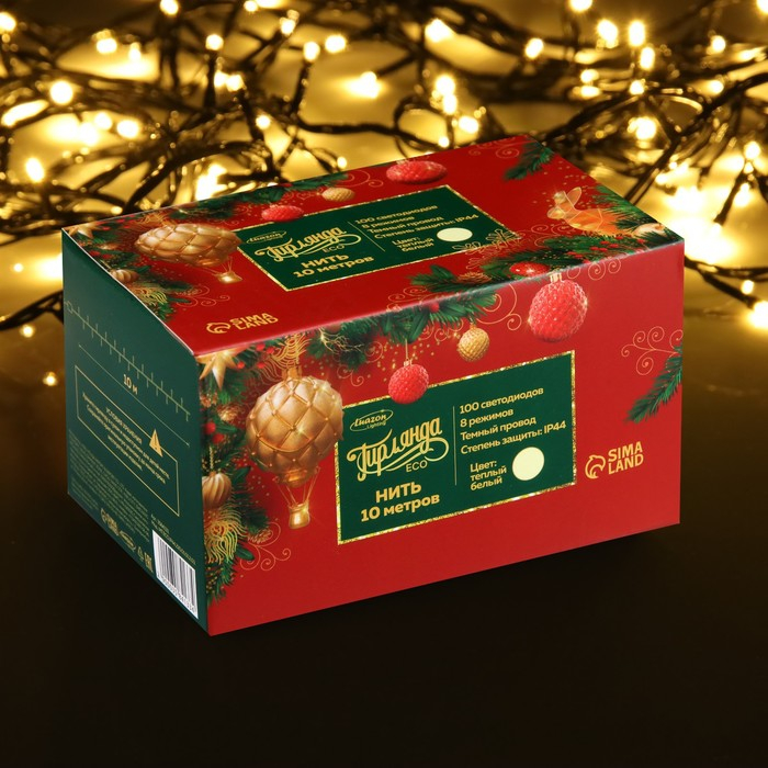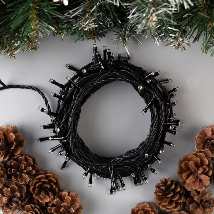 Гирлянда «Нить» 10 м, IP44, тёмная нить, 100 LED, свечение тёплое белое, 8 режимов, 220 В