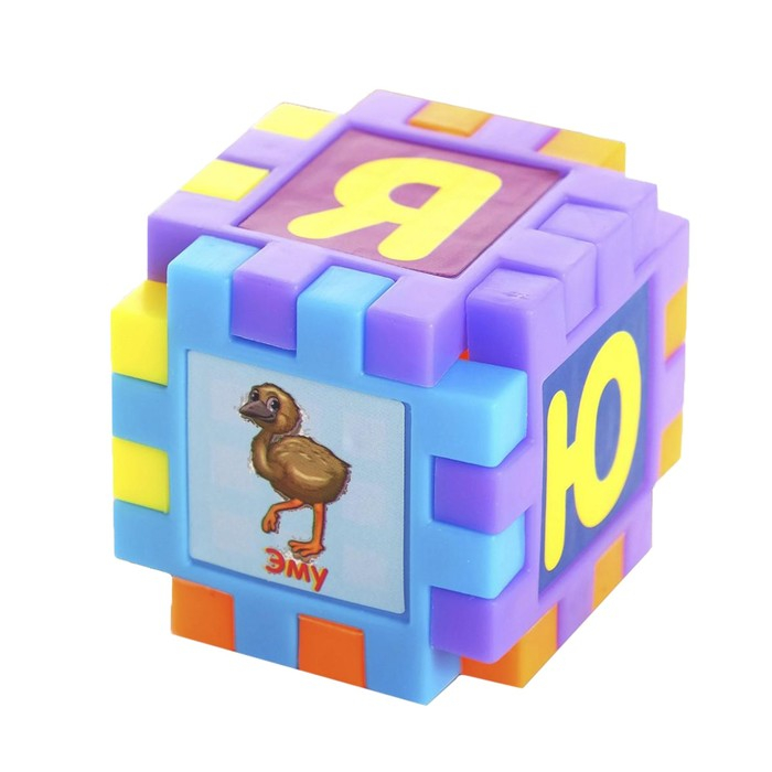 Элементы легко сцепляются друг с другом, образуя единое полотно или кубики. Помимо букв на деталях изображены животные. Так малышу будет проще соотнести рисунок и букву.