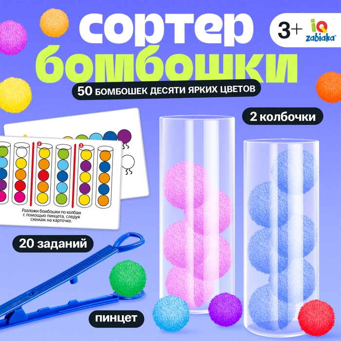 Развивающий набор «Цветные бомбошки: сложи по образцу», по методике Монтессори, 20 заданий, 3+