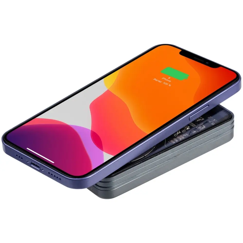 На iPhone 12–16 он примагничивается без каких-либо дополнительных приспособлений, а для iPhone 8–11 и Android-устройств с беспроводной зарядкой рекомендуем приобрести стикер-адаптер Magmate, чтобы максимально использовать это преимущество.
