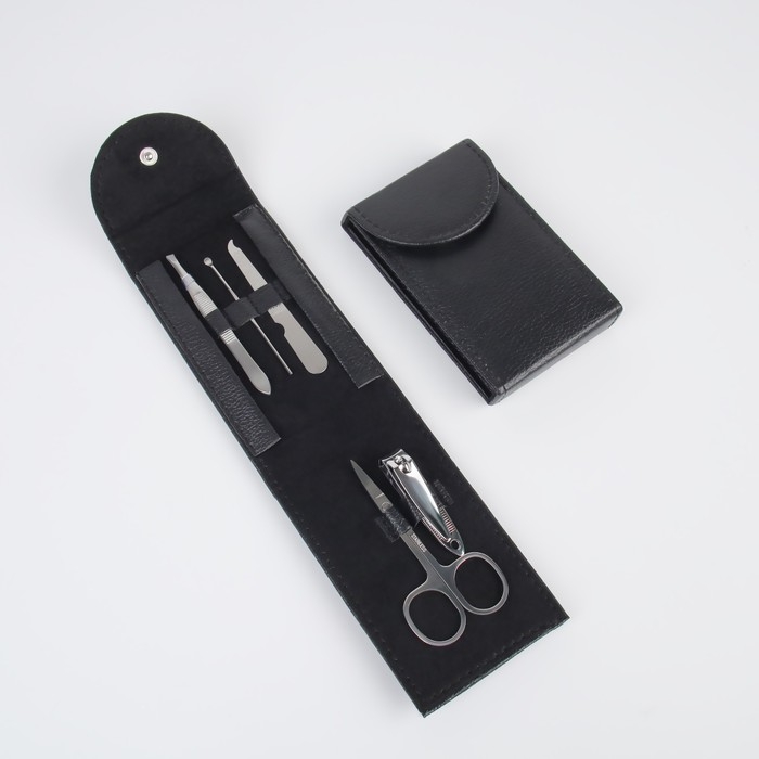 Набор маникюрный, 5 предметов, в чехле, цвет чёрный