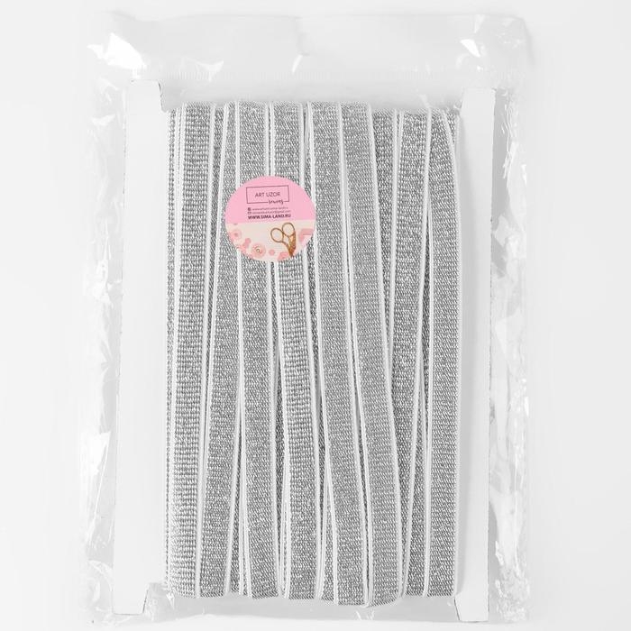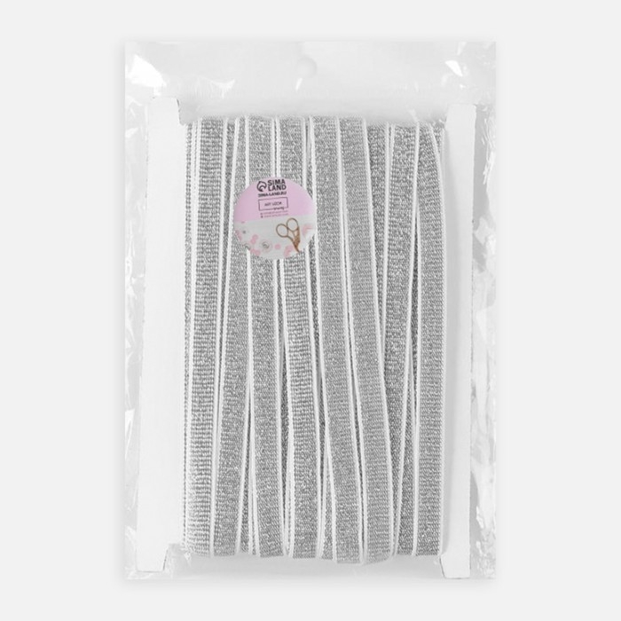 Резинка с глиттером, 10 мм, 10 ± 1 м, цвет белый/серебряный
