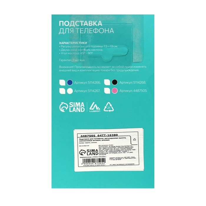 Подставка для телефона Luazon, складная, регулируемая высота, белая