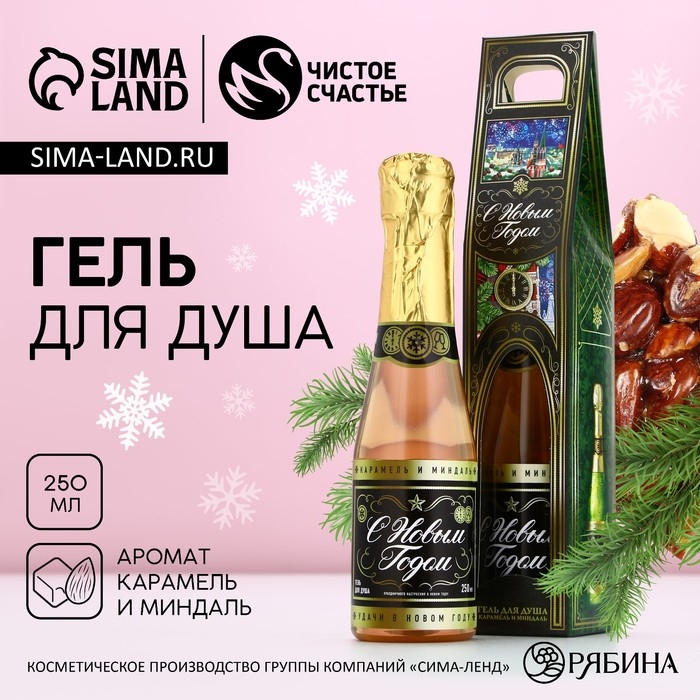 Гель для душа во флаконе шампанское «С Новым Годом», 250 мл, аромат шампанского, ЧИСТОЕ СЧАСТЬЕ