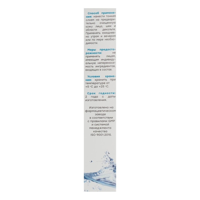 Способ применения: нанести тонким слоем на предварительно очищенную кожу лица, шеи и области декольте. Применять ежедневно утром и вечером или по мере необходимости.