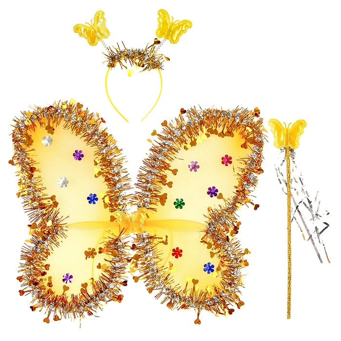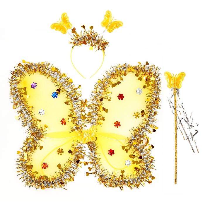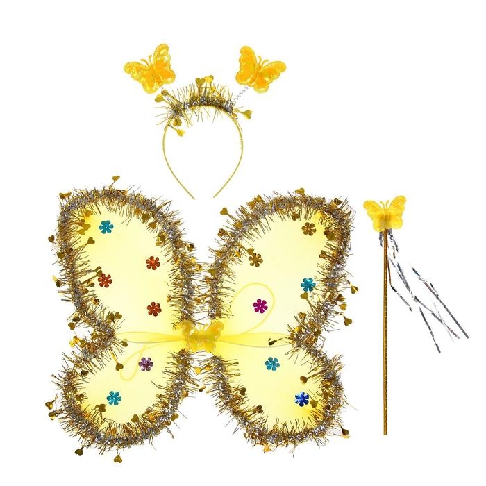Карнавальный набор «Бабочка», 3 предмета: крылья, ободок, жезл, цвет золотой
