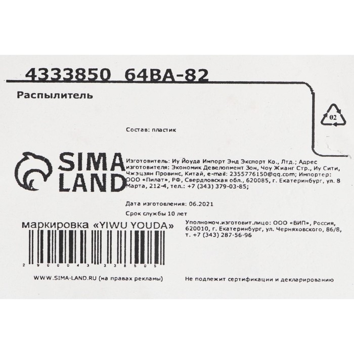 Распылитель воздуха пластиковый, 15 х 25 мм, 1 шт