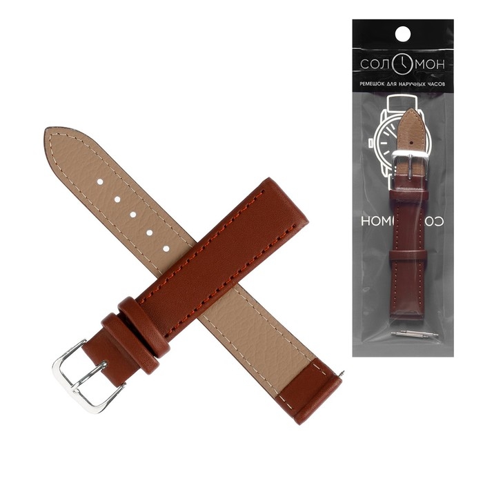 Ремешок для часов "Соломон", 18 мм, натуральная кожа, l-20 см, коричневый