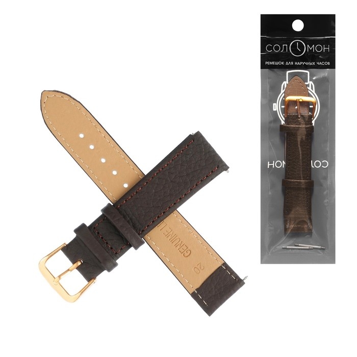 Ремешок для часов "Соломон", 20 мм, натуральная кожа, l-20 см, коричневый с тиснением