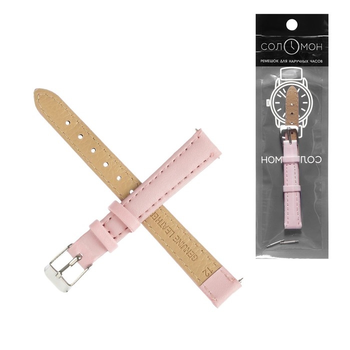 Ремешок для часов "Соломон", 12 мм, натуральная кожа, l-18 см, светло-розовый