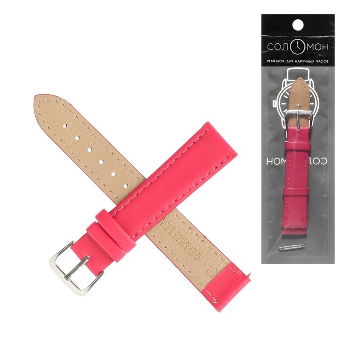 Ремешок для часов "Соломон", 18 мм, натуральная кожа, l-20 см, розовый
