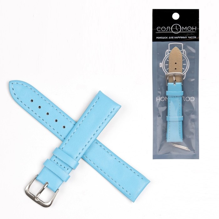 Ремешок для часов "Соломон", 18 мм, натуральная кожа, l-20 см, голубой