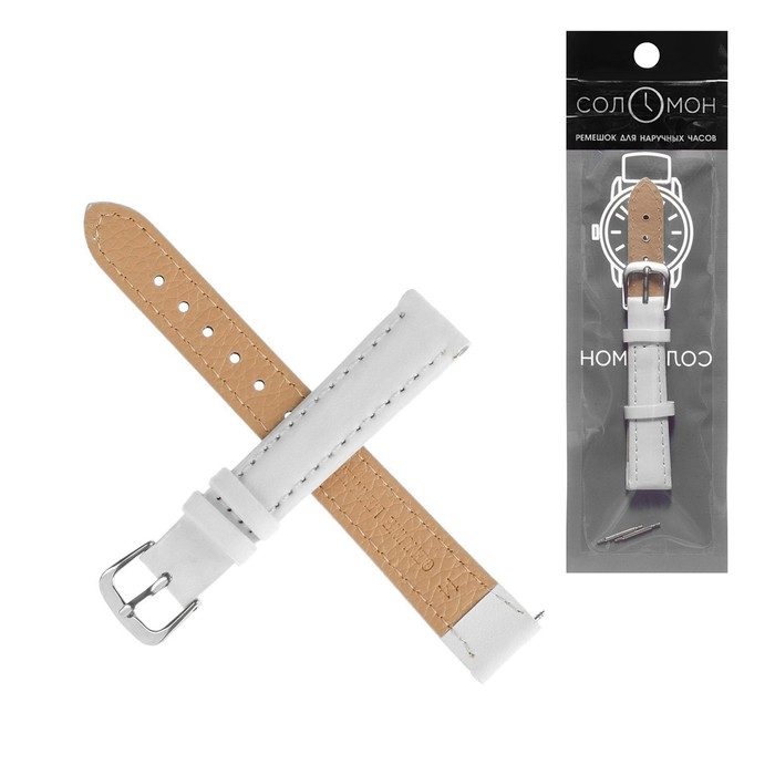 Ремешок для часов "Соломон", 14 мм, натуральная кожа, l-18 см, белый