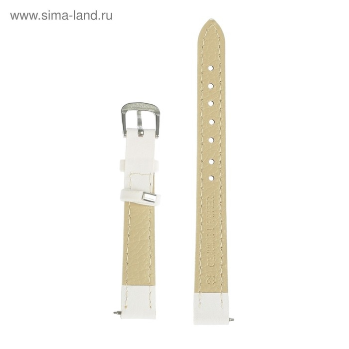 Ремешок для часов "Соломон", 12 мм, натуральная кожа, l-18 см, белый
