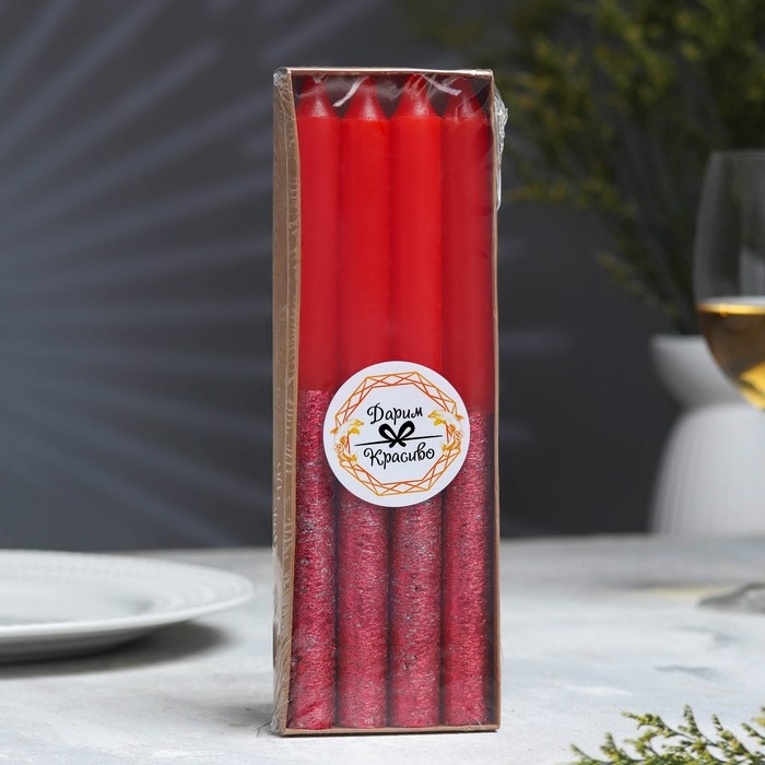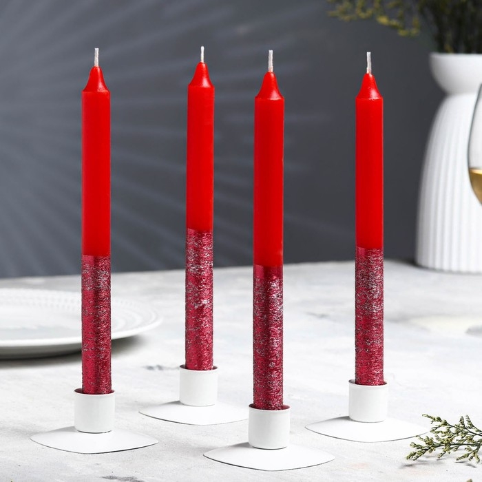 Набор свечей классических, 1,9х 20 см, 4 шт, красный металлик
