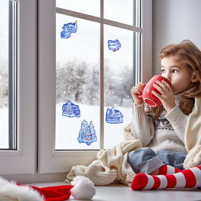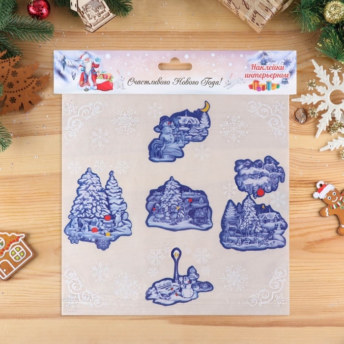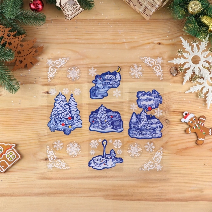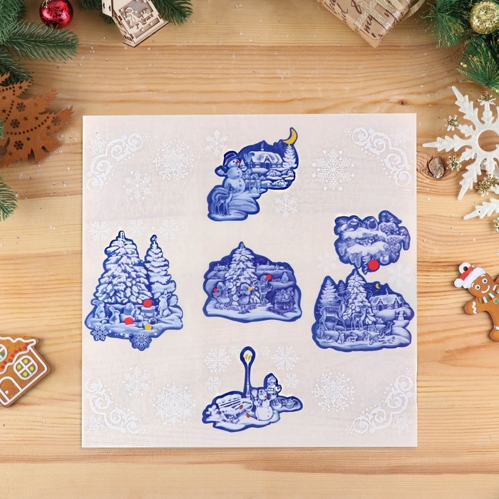 Набор наклеек на окна "Новогодний" зимние пейзажи, 24 х 37 см