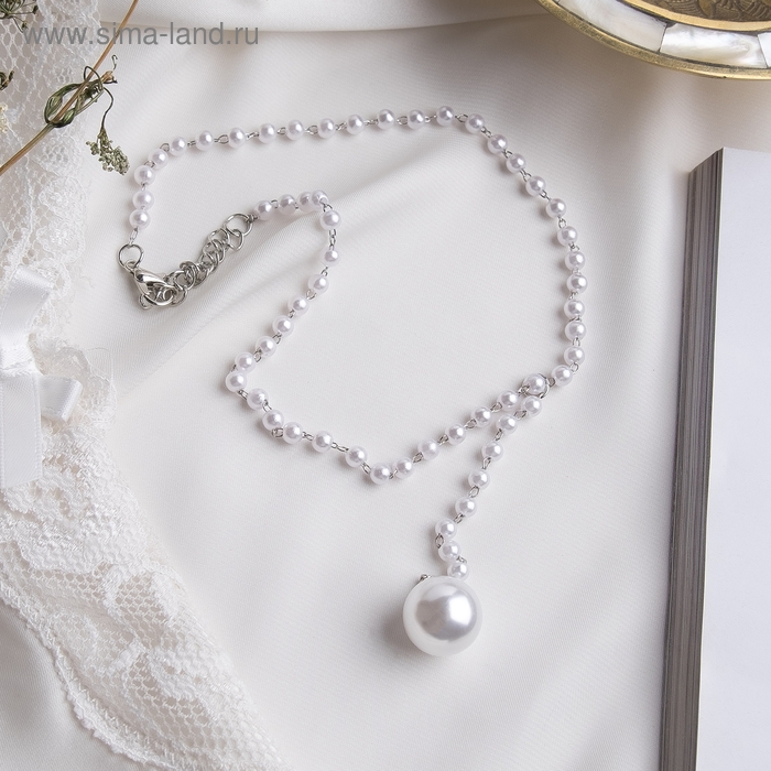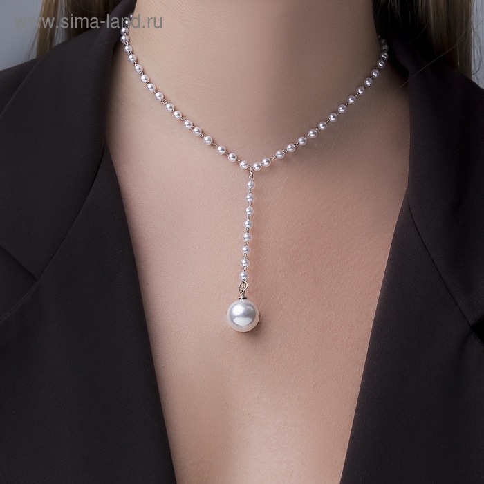 Колье с жемчугом «Олимпия», цвет белый в серебре, 32 см