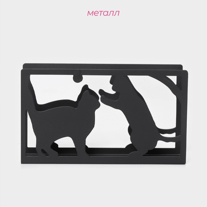 Салфетница Доляна «Кошки», 14×4×8 см, цвет чёрный