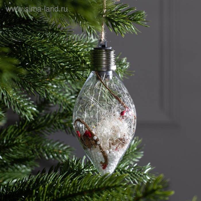 Ёлочный шар «Жёлудь», батарейки, 4 LED, свечение тёплое белое