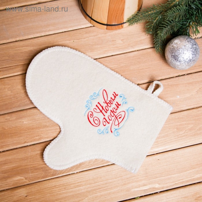 Рукавица для бани с вышивкой "С Новым Годом, с узорами"
