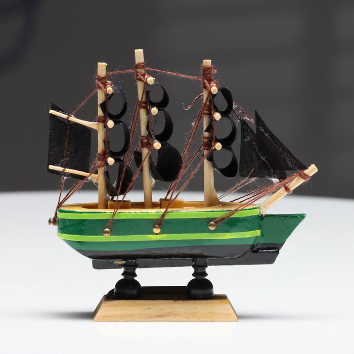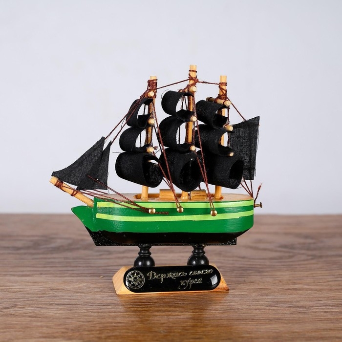 Корабль «Дункан», 10х3х10 см, зеленый корпус, черные паруса
