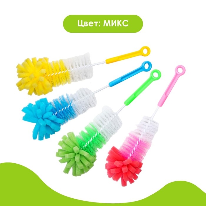 Данная модель легко и быстро устранит загрязнения. Щетина изготовлена из прочного и долговечного материала — нейлона. Поролоновая губка очистит даже труднодоступные места. Покрутите ручку, чтобы смыть налёт со дна и выступов, и удалите остатки пищи, совершая вертикальные движения. На конце ручки находится маленький ёршик для мытья сосок.