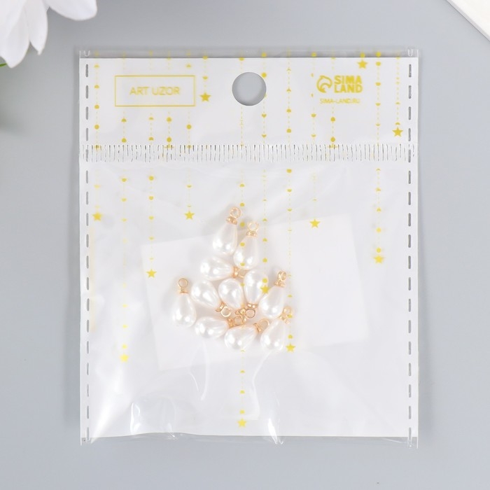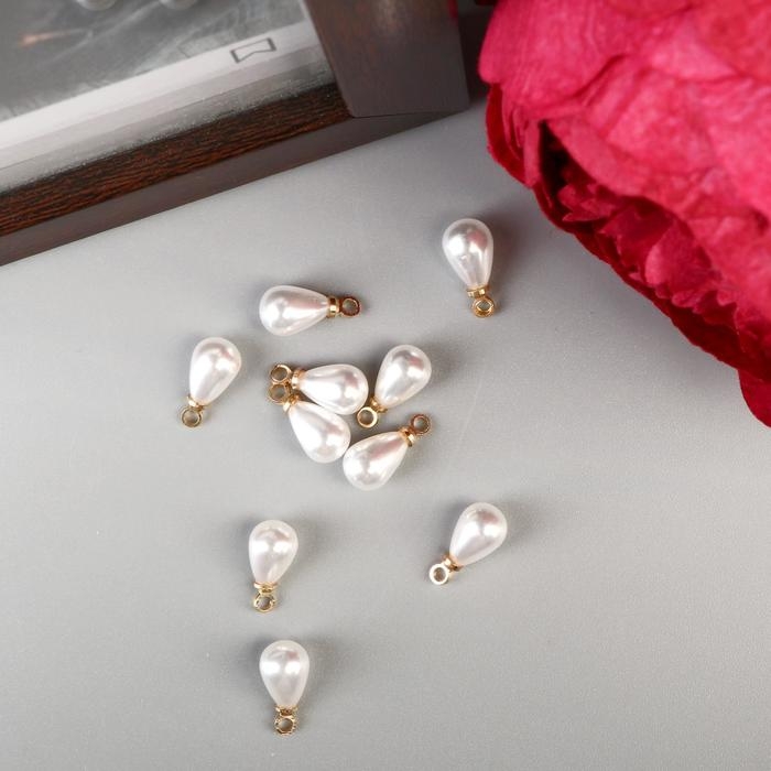 Декор для творчества пластик "Жемчужина-капелька с петелькой" набор 10 шт 0,7х1,2 см