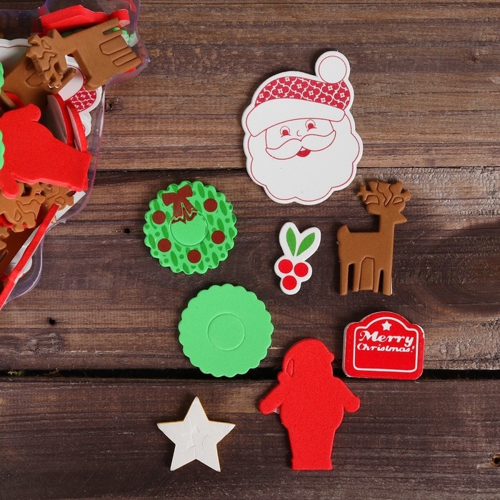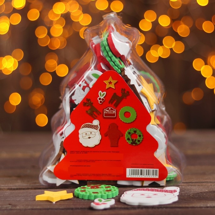 В наборе 90 декоративных элемента из мягкого EVA-материала. Фигурки имеют клеевой слой, с помощью которого их легко крепить.