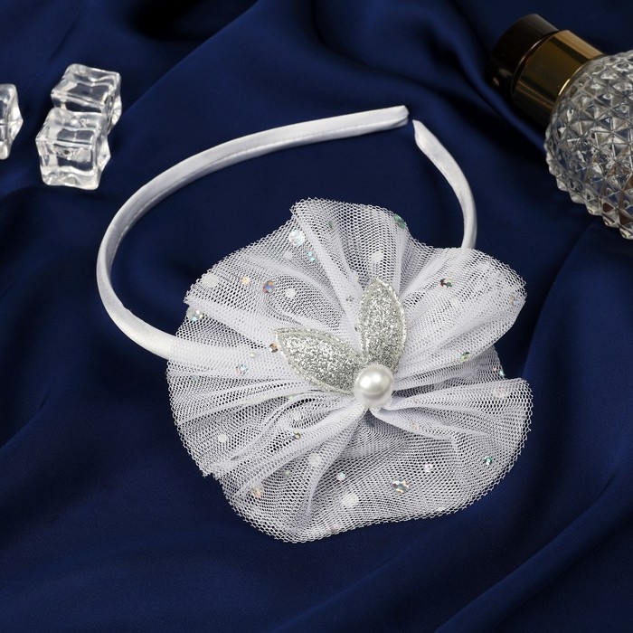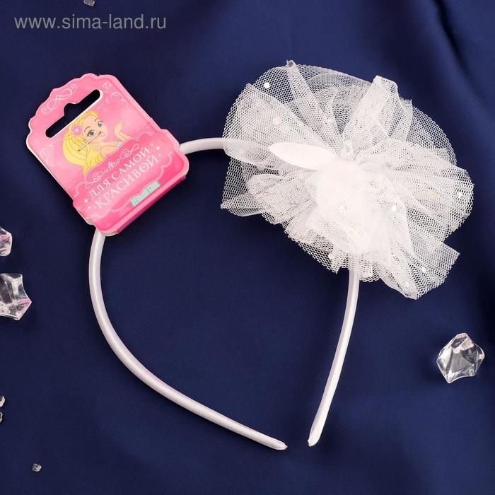 Ободок для волос "Малышка" ушки, пышный бант, 1 см белый