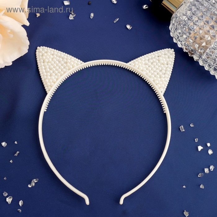 Ободок для волос "Ушки" 0,5 см, белый