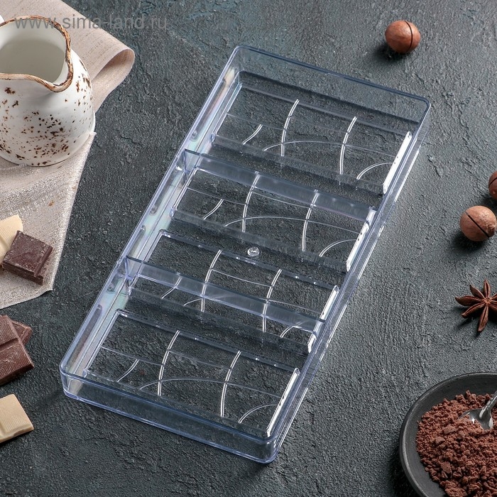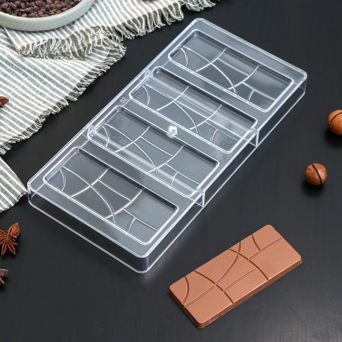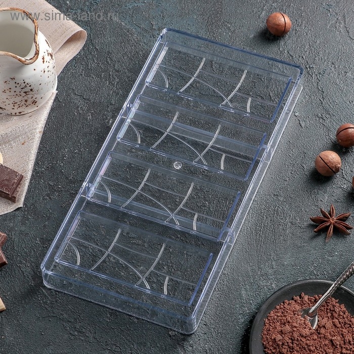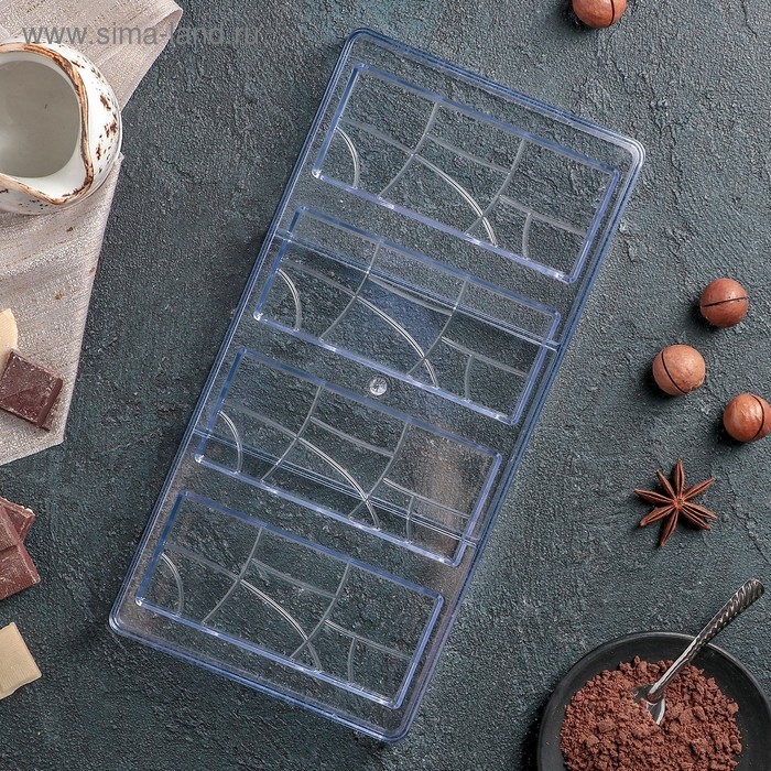 Форма для шоколада KONFINETTA «Плитка», 28×14 см, 4 ячейки 11,7×4,8×0,7 см, цвет прозрачный
