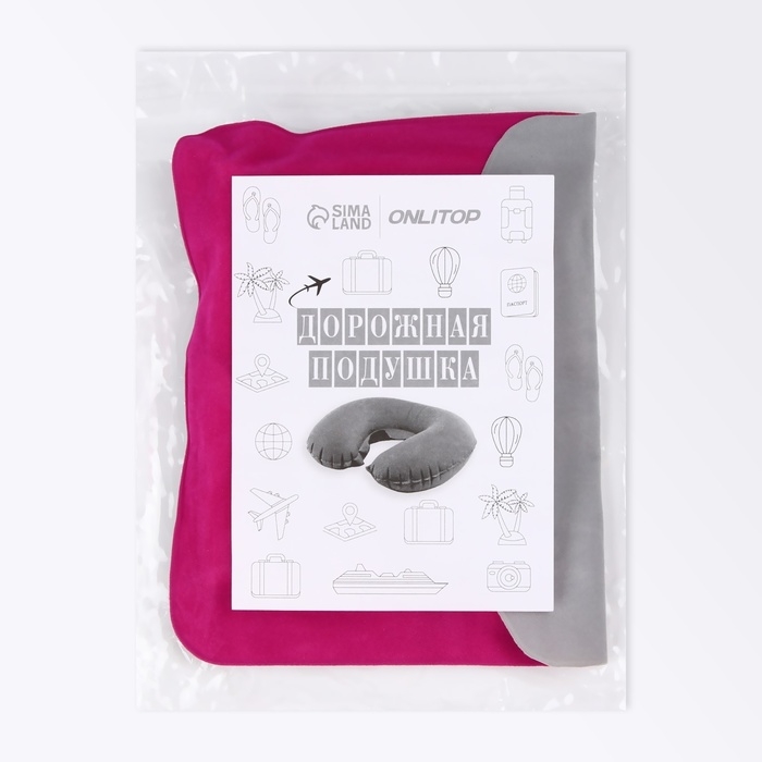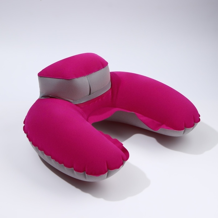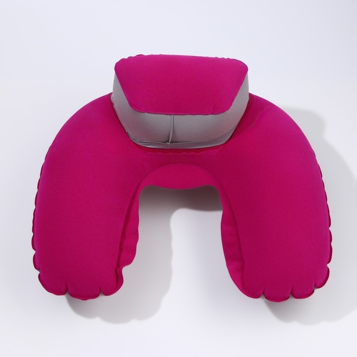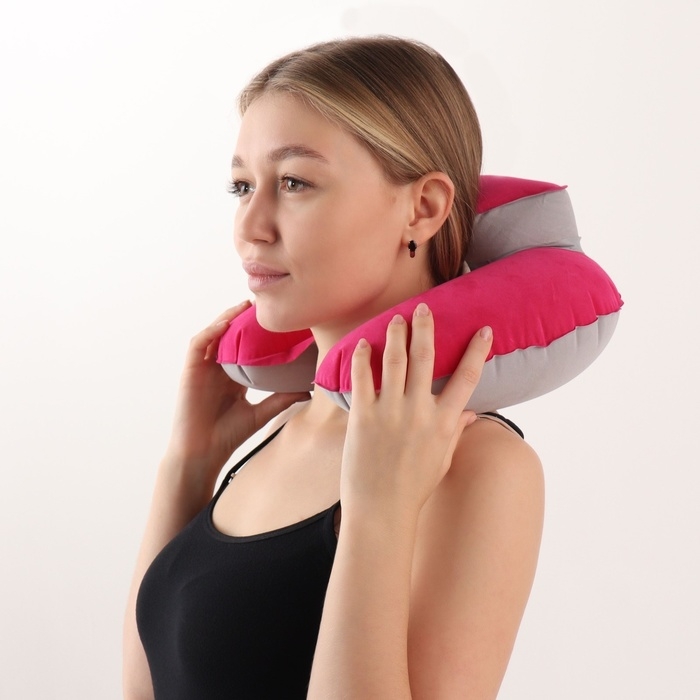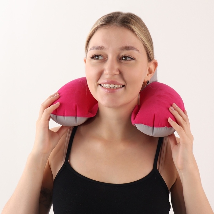 Подушка-воротник для шеи, с подголовником, надувная, в чехле, 43 × 28 см, цвет розовый