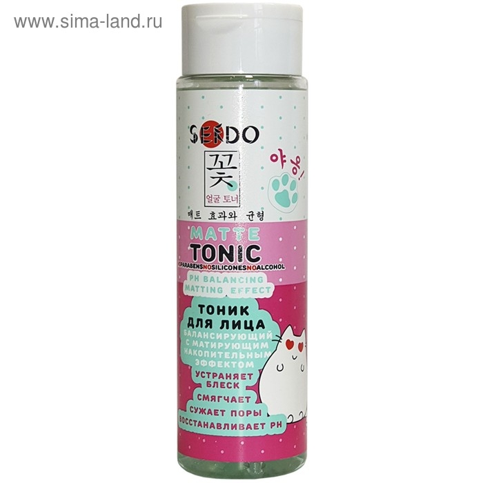 Тоник для лица Sendo с матирующим эффектом устраняет блеск, смягчает кожу, сужает поры, тщательно и бережно очищает от остатков косметики, тонизирует, увлажняет, уменьшает покраснения.