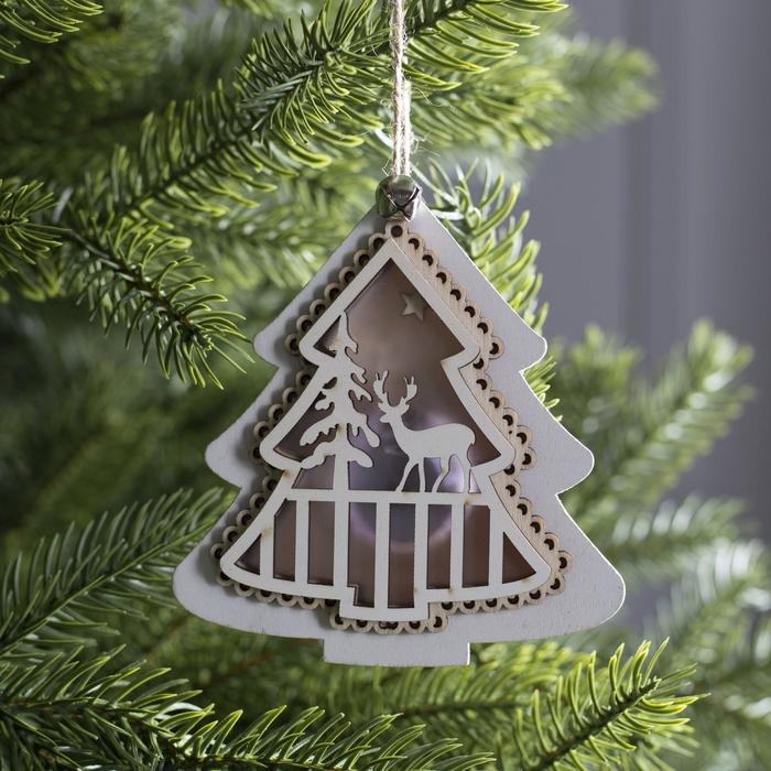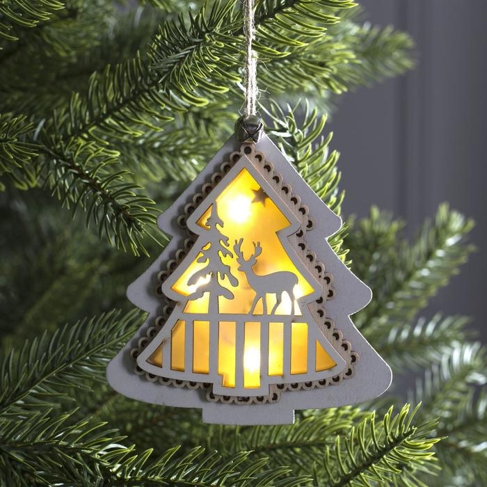 Ёлочная игрушка «Ёлочка с оленем», от батареек, свечение тёплое белое