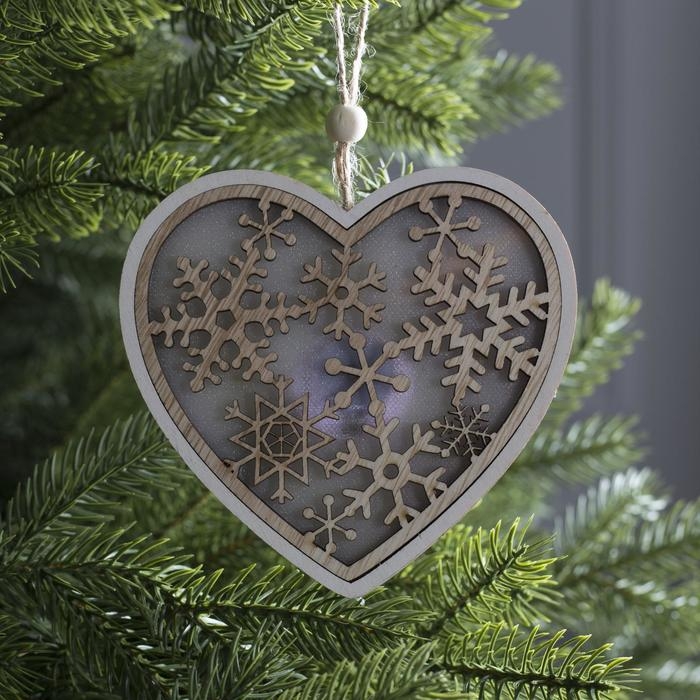 Ёлочная игрушка «Сердце в снежинках», от батареек, свечение тёплое белое