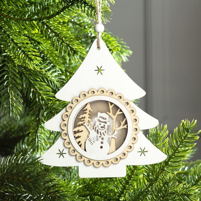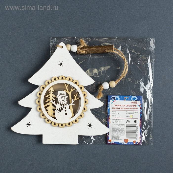 Ёлочная игрушка «Ёлочка со снеговиком», от батареек, свечение тёплое белое
