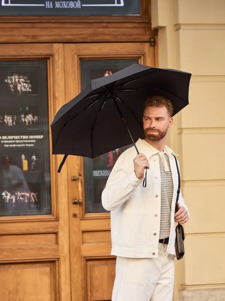 - Пластиковая ручка с кнопкой автоматического открытия и закрытия зонта и петлей