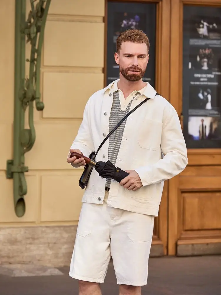 - Деревянная прямая ручка с кнопкой открытия и закрытия зонта