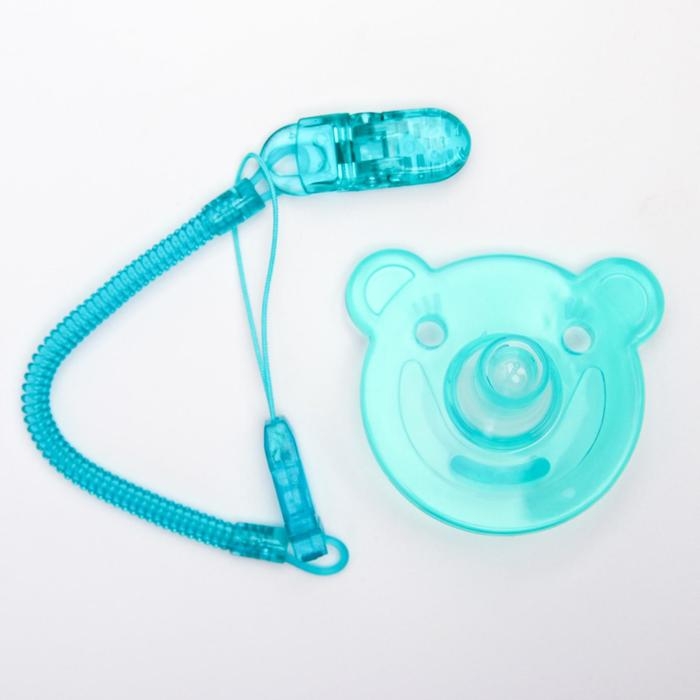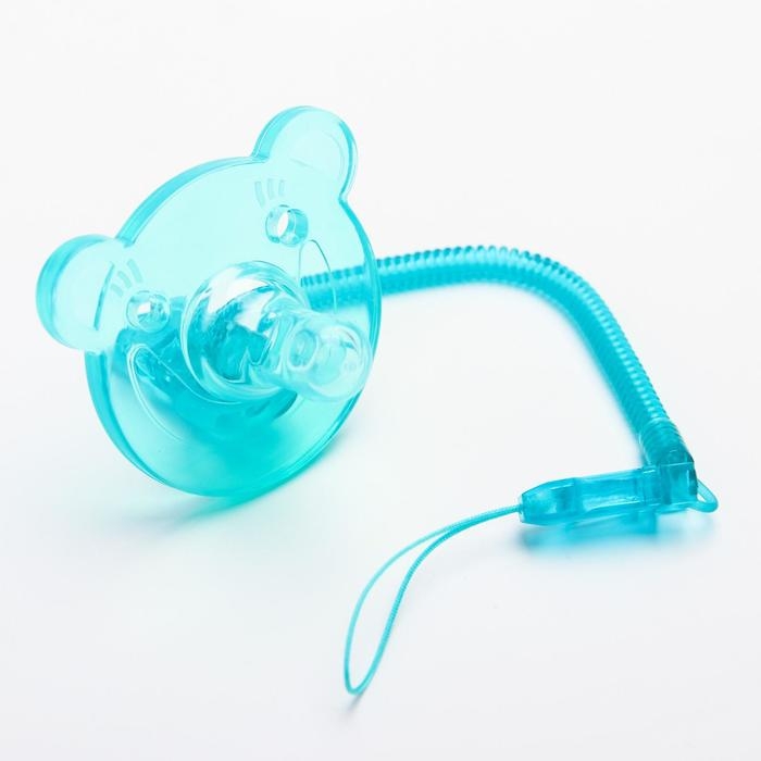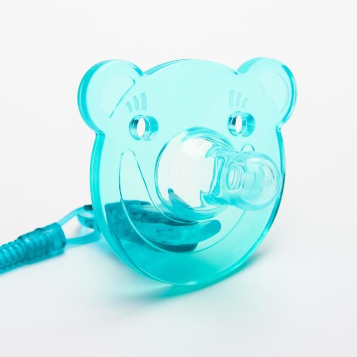 Соска - пустышка цельносиликоновая классическая «Мишка», от 0 мес., с держателем, в контейнере, цвет зеленый
