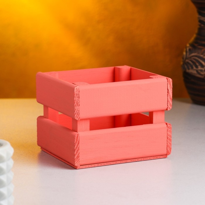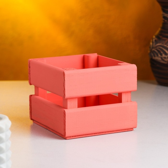 Кашпо деревянное 12×11×9 см "Однушка Лайт", двухреечное, розовый светлый Дарим Красиво