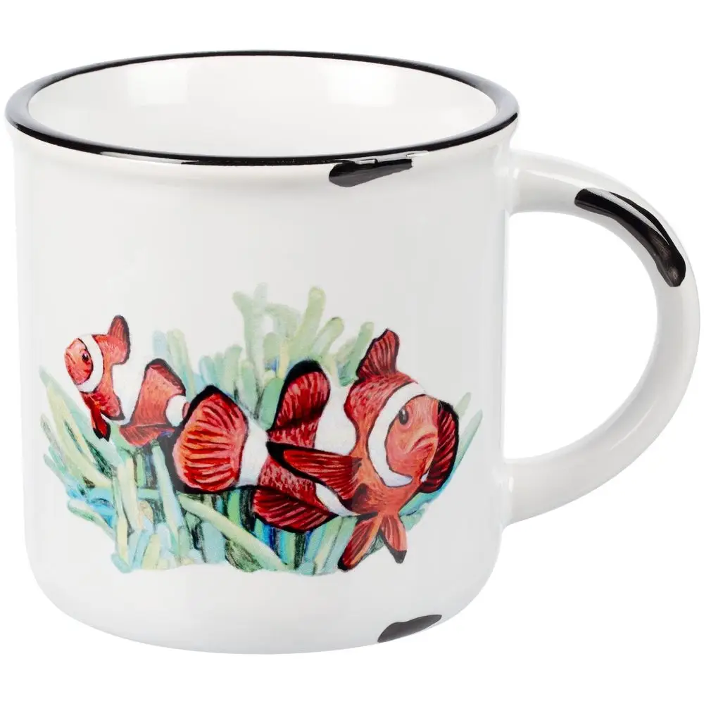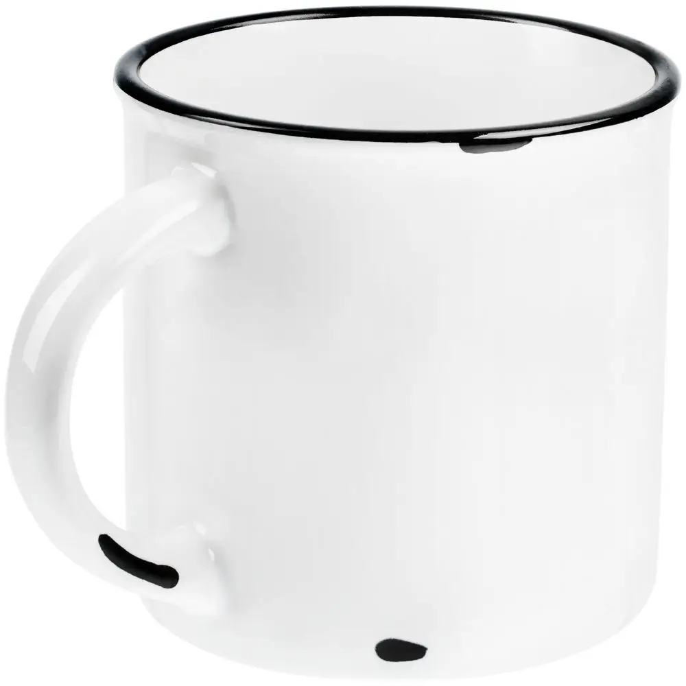 Имитирующие сколы эмали пятна наносятся вручную и могут отличаться от кружки к кружке.