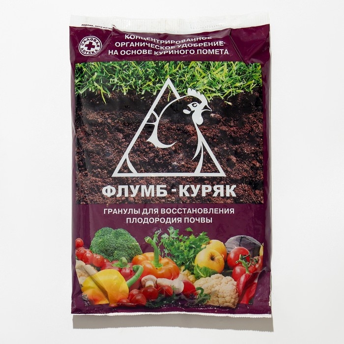 Ценнейшее органическое удобрение Флумб Куряк, который содержит все необходимые питательные вещества в легкодоступной форме – азот, фосфор, калий, микроэлементы, естественный стимулятор роста. Продукт получен методом биотехнической обработки куриного помета, в процессе которого в курином помете уничтожаются патогенная микрофлора, яйца гельминтов, личинки насекомых-вредителей, семена сорных растений. Препятствует накоплению в растениях тяжелых металлов, радионуклидов и нитратов из почвы.