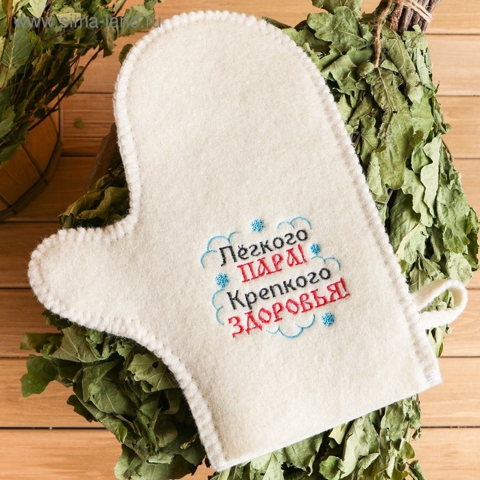 Рукавица для бани с вышивкой "Лёгкого пара, крепкого здоровья!"